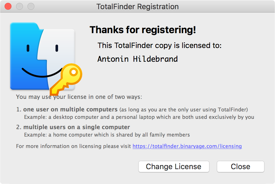 Thank you for registering and enjoy using TotalFinder! :-)